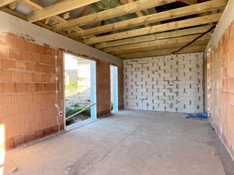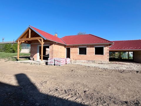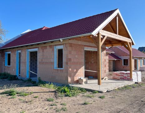 Az építkezés már folyik, tetőszerkezet kész, válaszfalak beépítésre kerültek, ablakok felmérése és beépítése folyamatban.